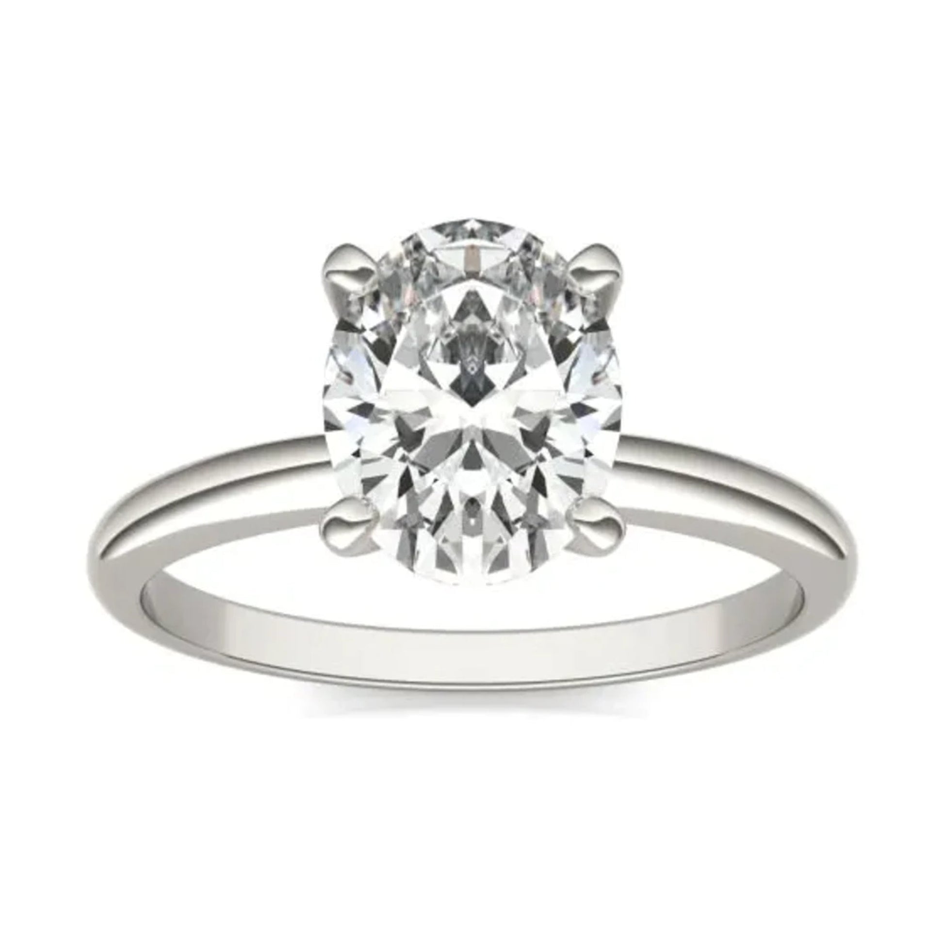 2.00 CTW AGI Certified Oval Lab Grown Diamond Solitaire Engagement Ring in 14K White Gold (G-VS)