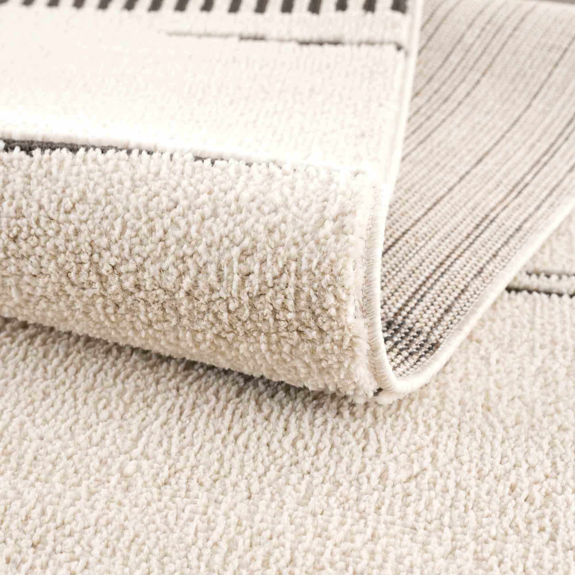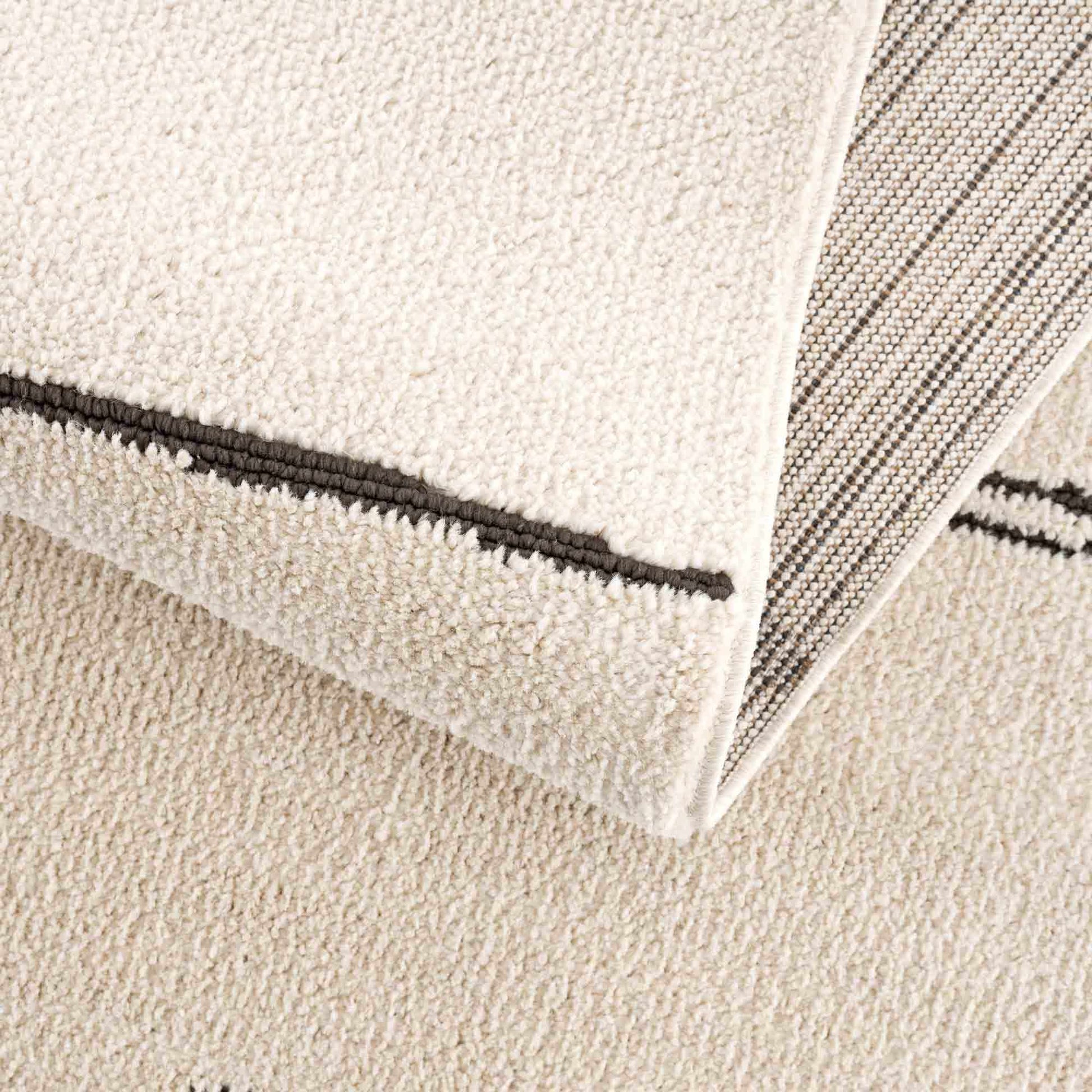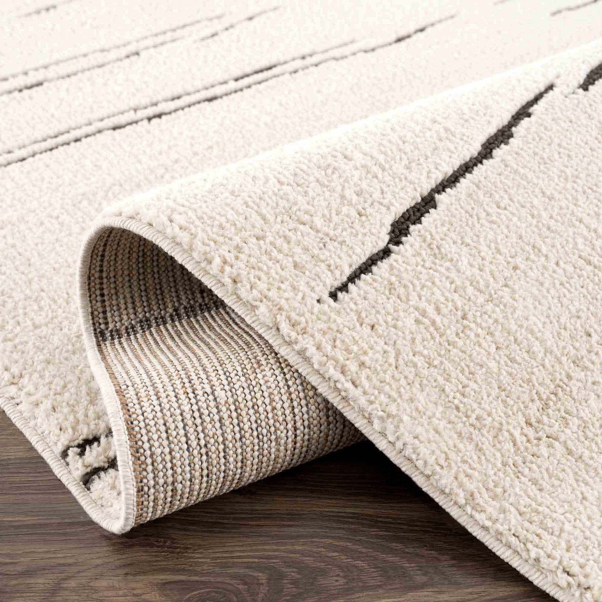The Aulii Area Rug features a neutral beige base with striking, irregular black stripes, offering a unique blend of simplicity and boldness. The contrast between the soft beige and dynamic black lines adds an element of modern sophistication, making it a perfect fit for contemporary living spaces, offices, or entryways. Its minimalistic yet eye-catching design complements a variety of decor styles while providing a cozy and stylish foundation for your room. The Aulii rug brings balance and character to any space, offering both visual appeal and comfort underfoot.