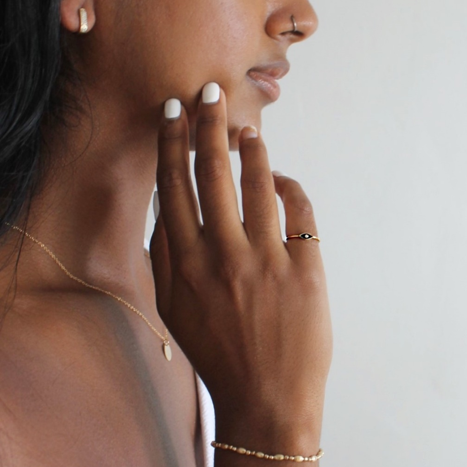 Ward of negative vibes with this beautiful 10KT ring featuring a delicate evil eye accent. Enameled in a neutral black tone and finished a tiny crystal accent in the centre pupil, this is the perfect ring either on its own or worn as part of a stack. Delicate yet durable, it's also a great choice if you're looking for a new pinky ring!