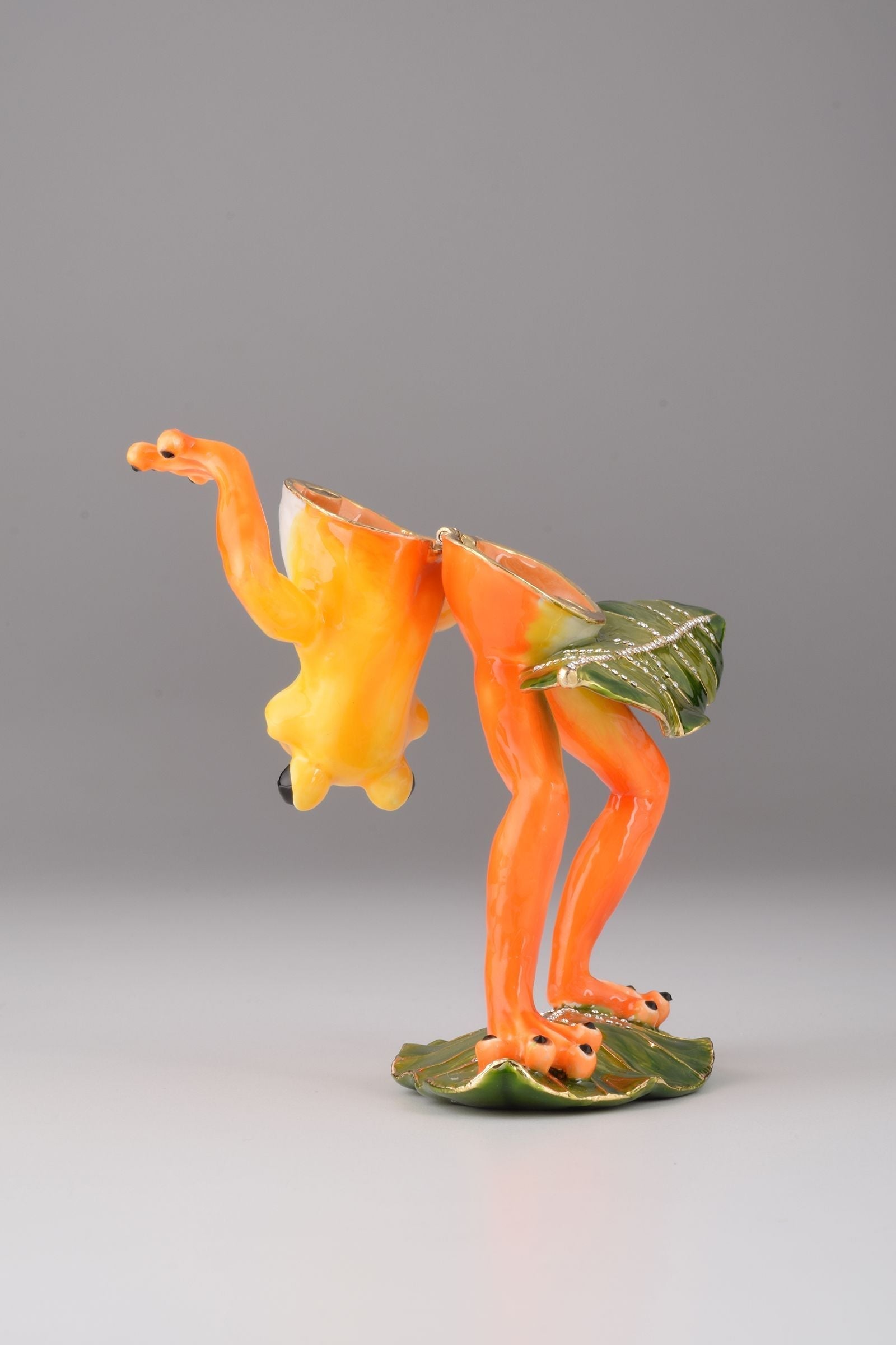 This item is part of the Frog Trinket Box Series and part of The Keren Kopal collection, showcasing the artist's mastery of the art nouveau style. These handcrafted pieces are inspired by the opulent Fabergé eggs, renowned for their intricate designs and use of precious materials.