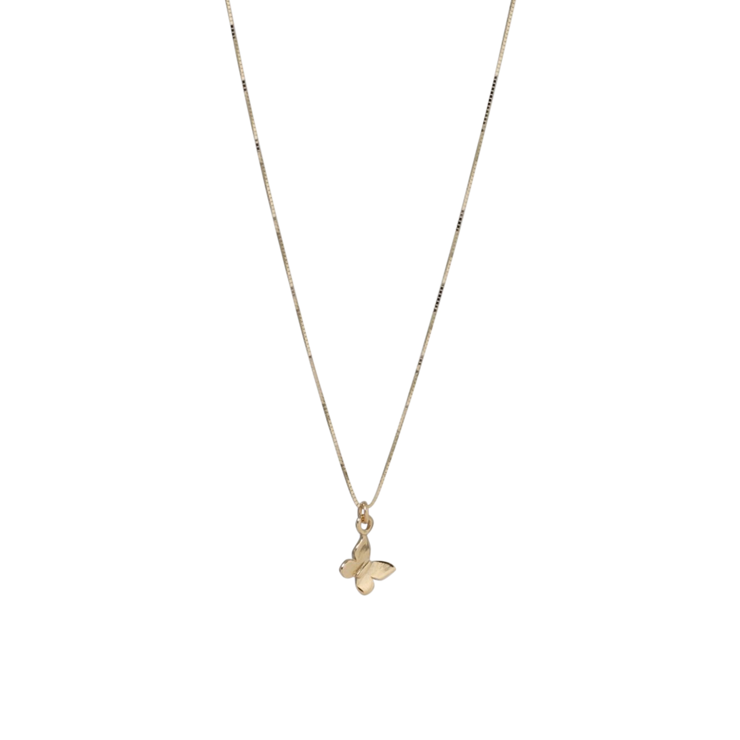 Nostalgia meets luxury in this 14KT gold necklace featuring a minimalist butterfly pendant with outstretched wings crafted to appear as if in flight. Strung on a delicate chain, we hope you wear this necklace as a reminder of all you are capable of when you let go and take flight.
