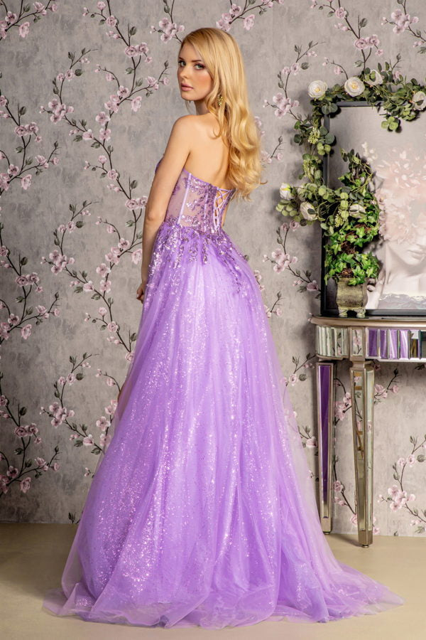 Sequin Strapless Sheer Bodice Mesh A-line Long Dress