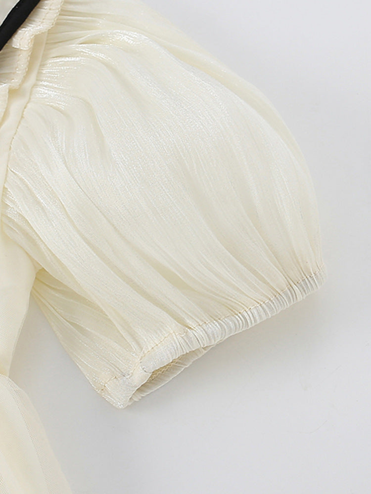 Summer New Arrival Girls’ Solid Color Embroidery Short Sleeves Preppy Dress