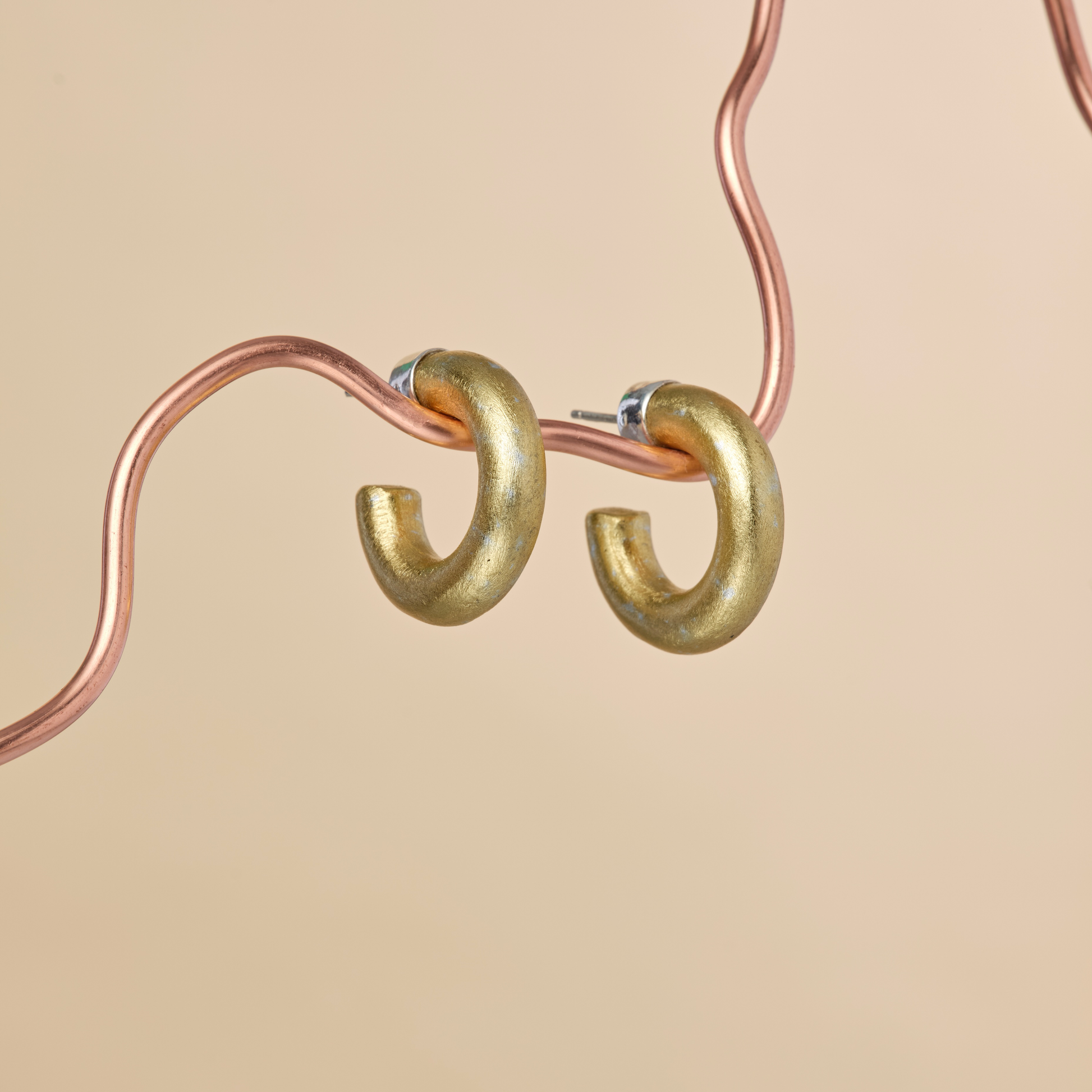 How do we get the gold tone? Gold anodization of aluminum known as anodizing is an electrochemical process which converts the metal surface into a decorative, durable, corrosion-resistant, wear-resistant oxide layer. It cannot chip or peel. We do not use pigments, but metals to obtain the gold color. Gold anodizing is therefore extremely UV resistant and will remain sparkling for a long time. COLOR/PATINA MAY VARY DUE TO THE HAND MADE NATURE OF THE PIECE. These imperfections reflect the nature of the material and artisanal hand feel.