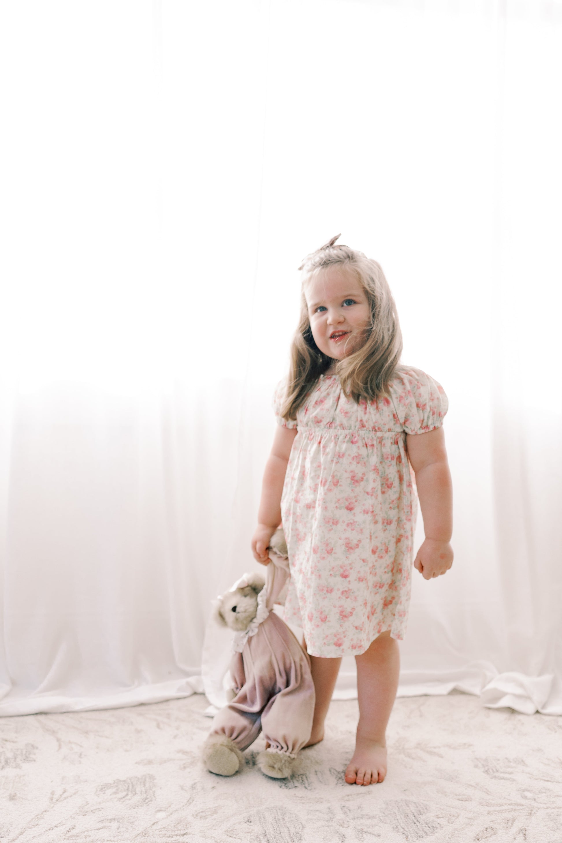 Introducing our charming Kennedi Dress, a delightful addition to any young girl's wardrobe. Made from high-quality cotton, this dress features vibrant floral patterns that exude bohemian charm. The cap sleeves add a touch of whimsy, while the elasticized gathers around the front and back bodice, and waist ensure a comfortable and flattering fit. With elasticized shoulders and sleeves, this dress offers flexibility and ease of movement, perfect for playful days or special occasions. Let your little one express her unique style in this effortlessly sweet ensemble. Fabric: 100% Organic Cotton Care: Machine wash cold, Tumble Dry Low, Do Not Bleach, and warm iron if needed.